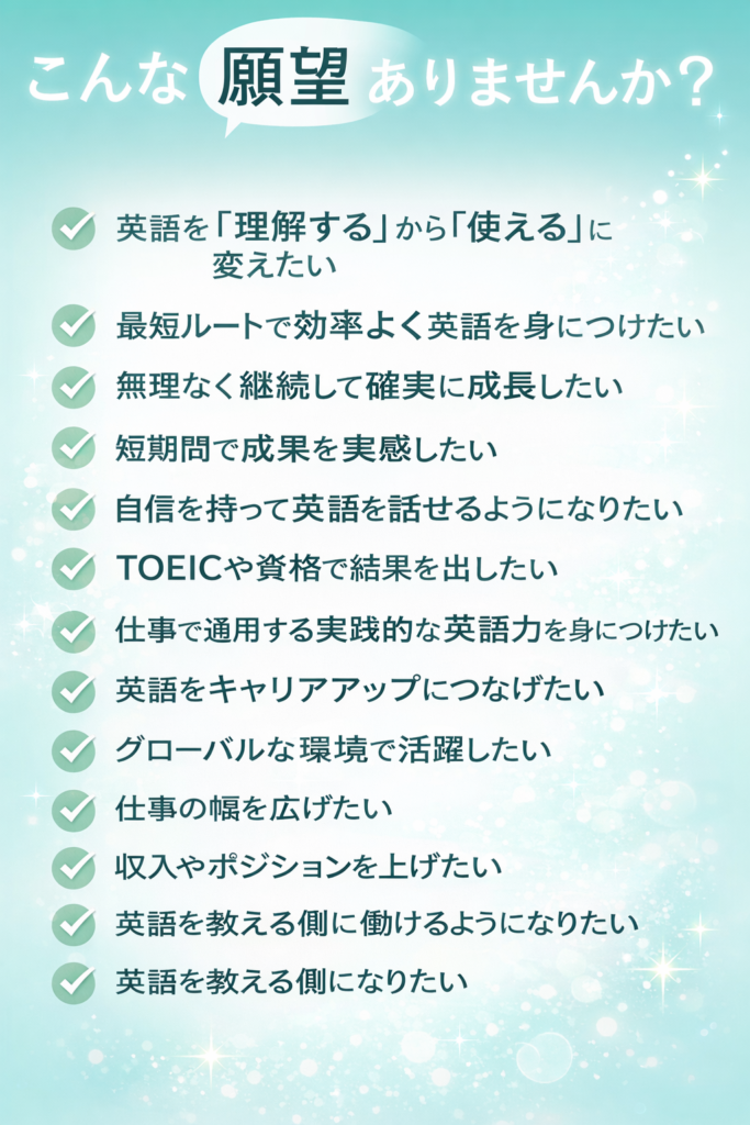 「英語が苦手…」という方も、丁寧かつ親身な指導でしっかり結果を出しています。あなたのペースに合わせて、一緒に確実にステップアップしましょう。